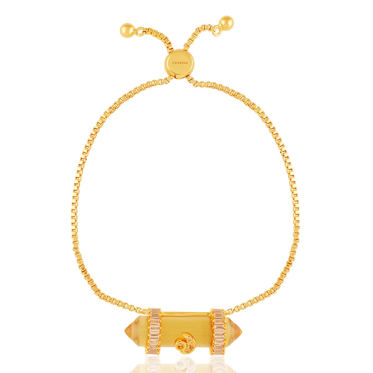The Sunspell Bracelet pairs a vibrant citrine stone with crystal zirconia detailing, all set in 18k gold-plated brass. Hypoallergenic and full of warmth, this statement piece channels abundance, positivity, and polish.