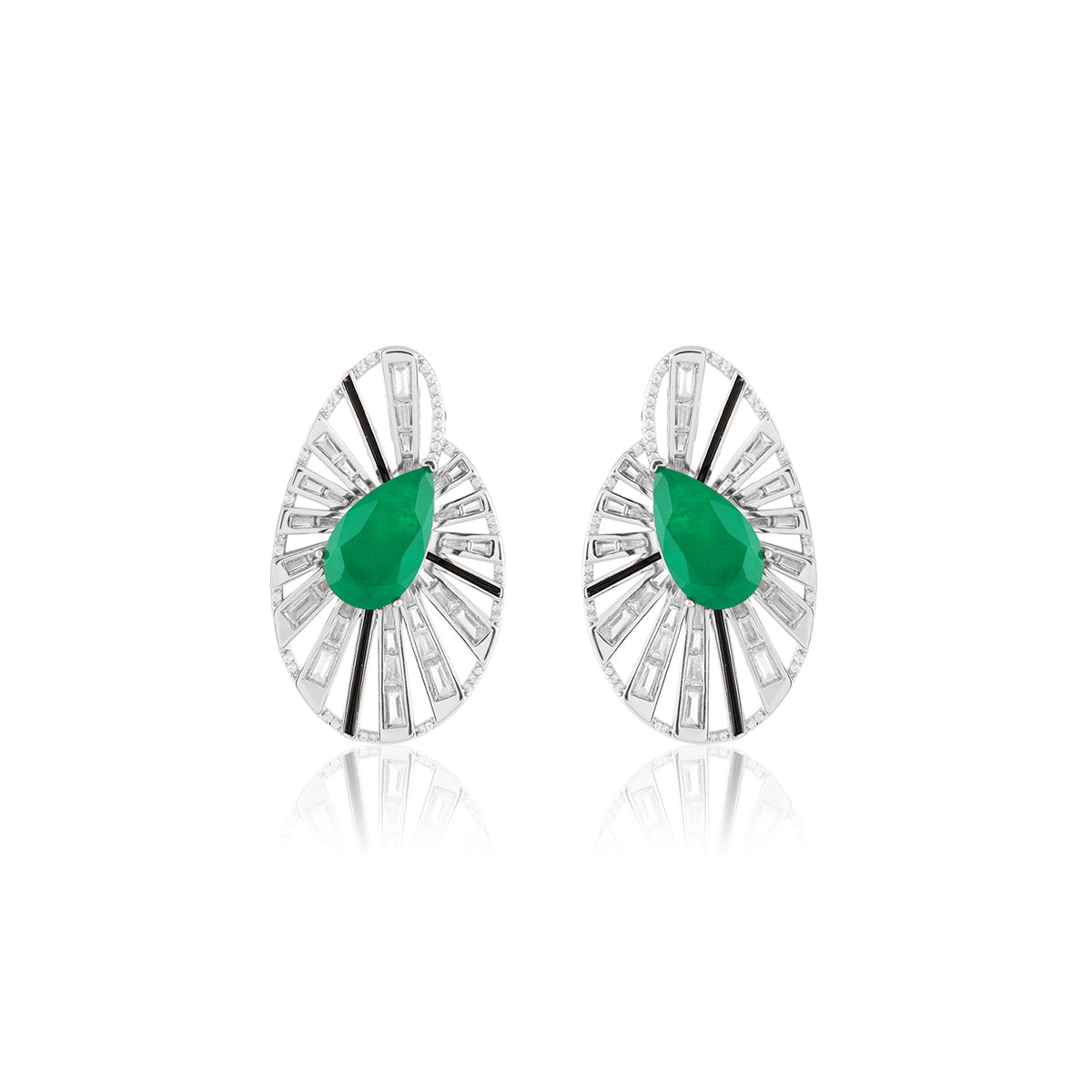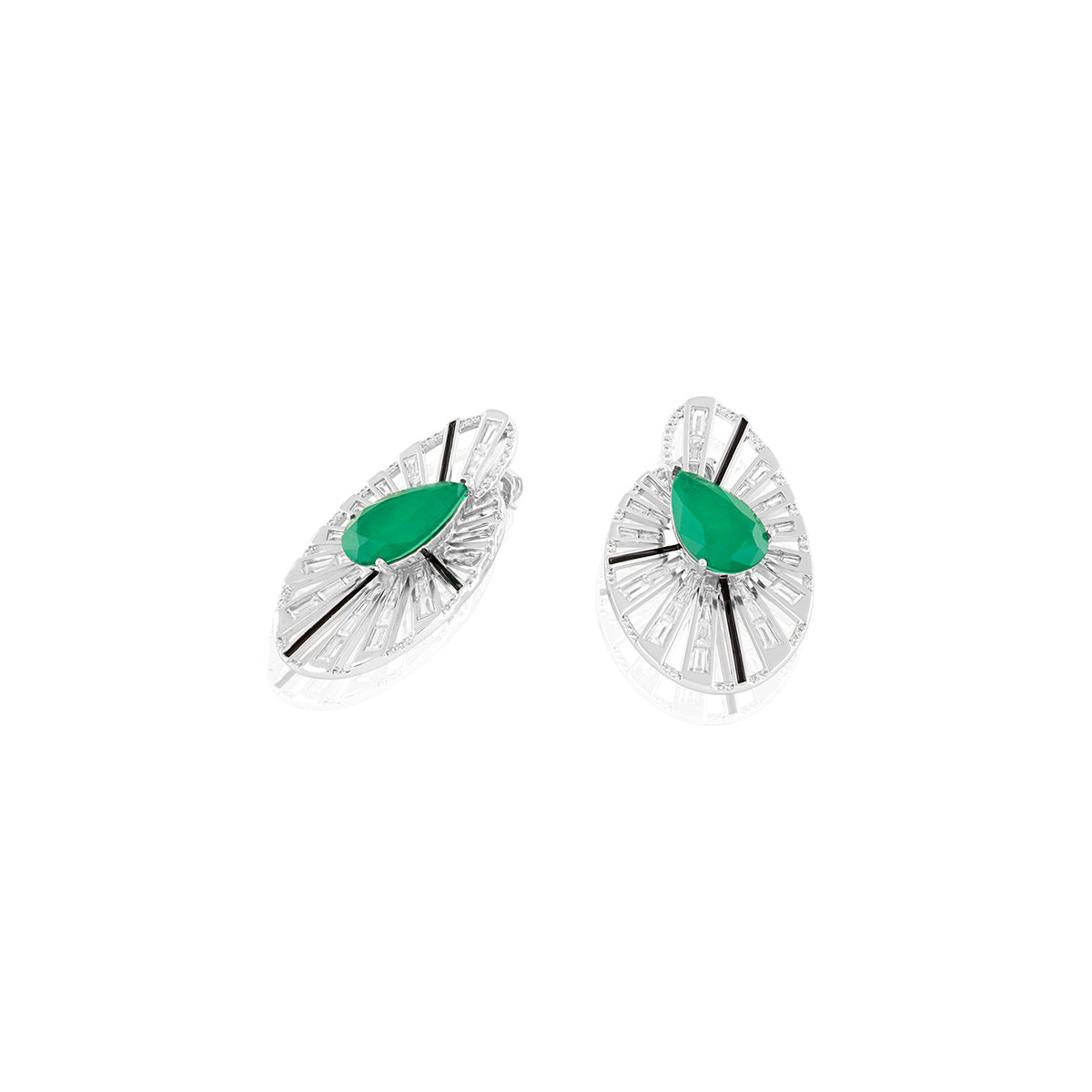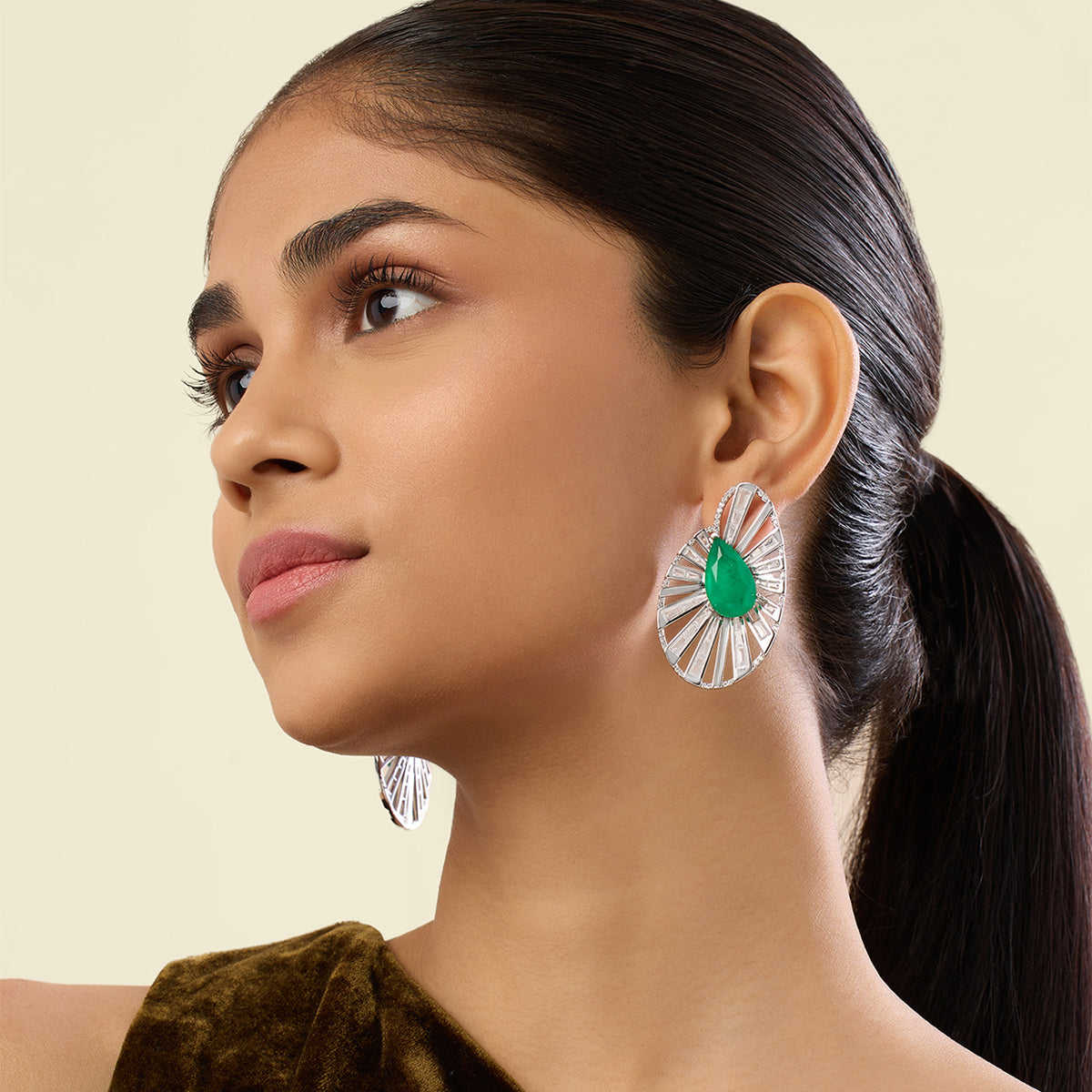 Turn heads with Isharya’s white and green stud earrings, featuring special-cut crystal zirconia and Botox emeralds. Crafted in brass with rhodium plating, these hypoallergenic statement earrings exude timeless glamour. Perfect for weddings, festive soirées, and cocktail nights. Shop unmatched luxury now.
