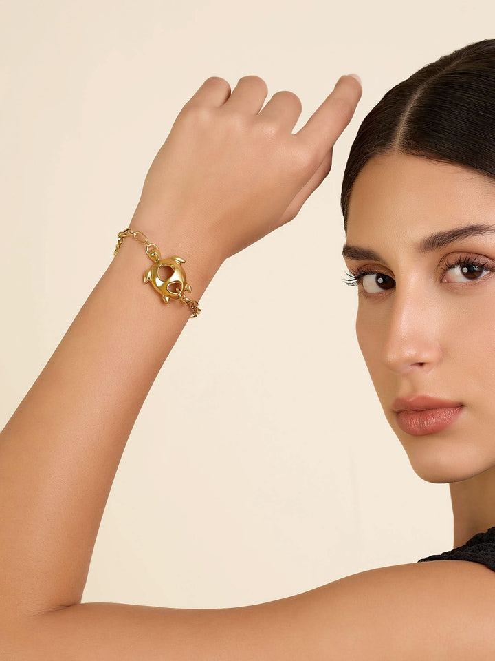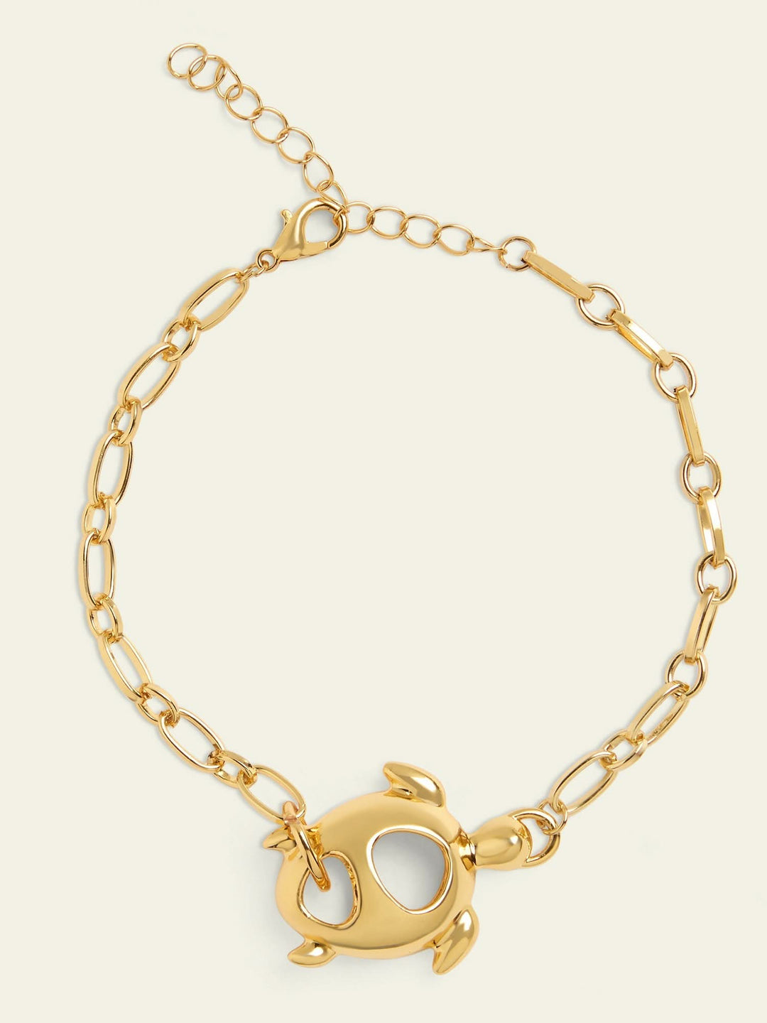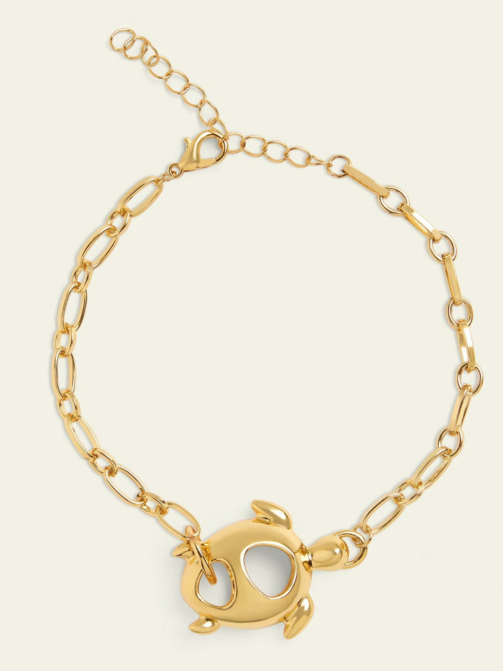 Embrace the boldness and adventure with our Turtle Chain Bracelet! Made with 18-karat gold plating, it's perfect for everyday wear or to add flair to your party look. Make a statement with this unique and stylish piece.