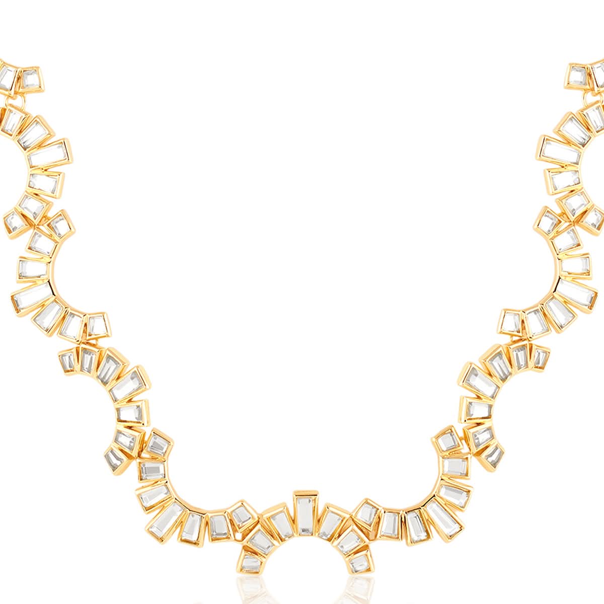 Make waves with this bold gold-and-white wavy choker, featuring hand-cut mirrors in Signature Isharya style. Crafted in hypoallergenic brass with 18k gold plating, it’s perfect for weddings, parties, and festive soirées. Own the spotlight—shop now.